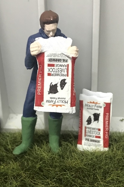 Agricoltore che svuota un sacco di cibo per suini