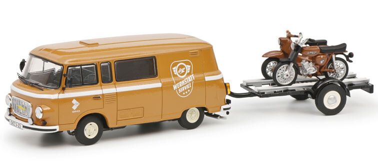 BARKAS B 1000 con rimorchio contenente 2 moto Simon Servizio giallo