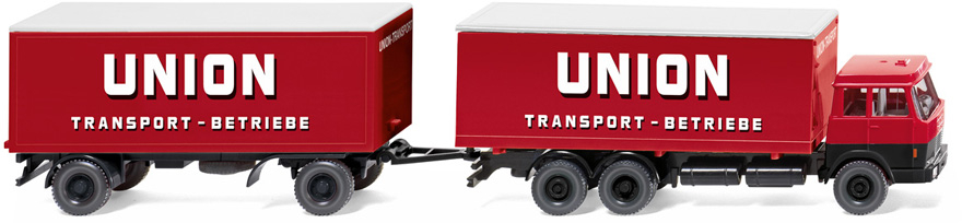 HANOMAG Henschel 6x4 box portapacchi rigido con rimorchio Union box rigido a 2 assi