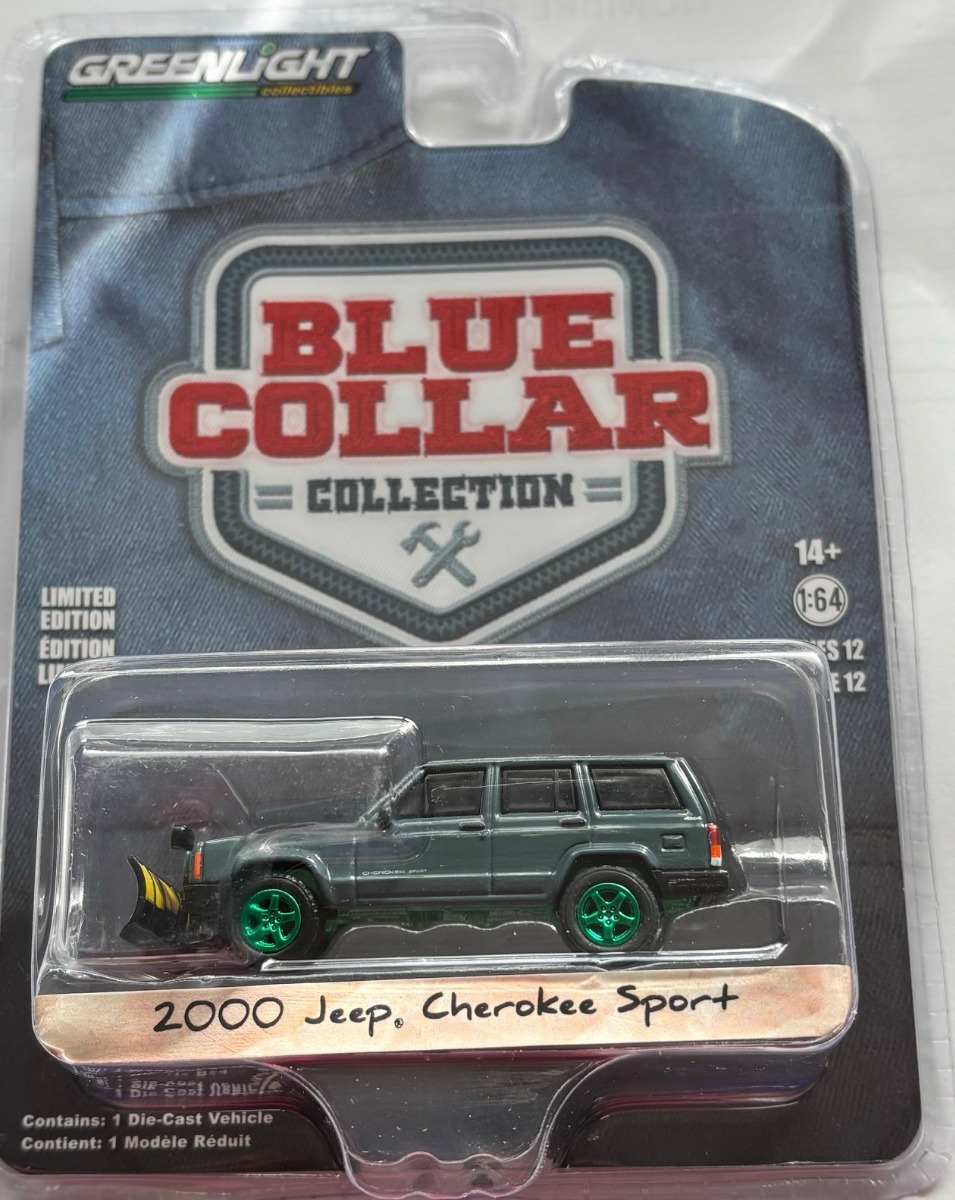 JEEP Cherokee sport 2000 con spazzaneve e cerchi verdi della serie BLUE COLLAR in blister
